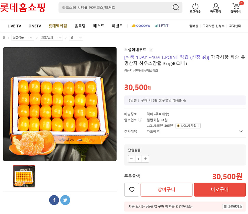 그럼, 귀여운걸과 함께 롯데홈쇼핑 보섭이네푸드 가락시장 직송 유명산지 하우스감귤을 살펴볼까요?^^