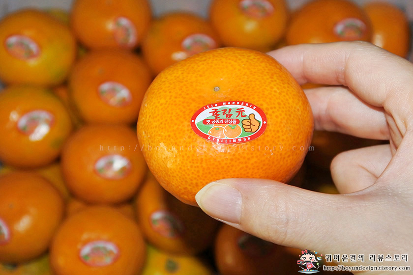 감귤마다 고급스러움을 더해주는 스티커가 부착되어 있었고, 감귤이 상한 것 없이 모두 신선하게 도착했어요!