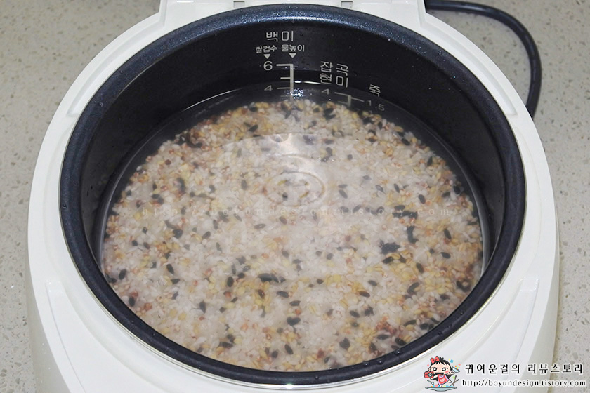 멥쌀에 찹쌀, 찰흑미, 찰보리, 수수를 섞어서..