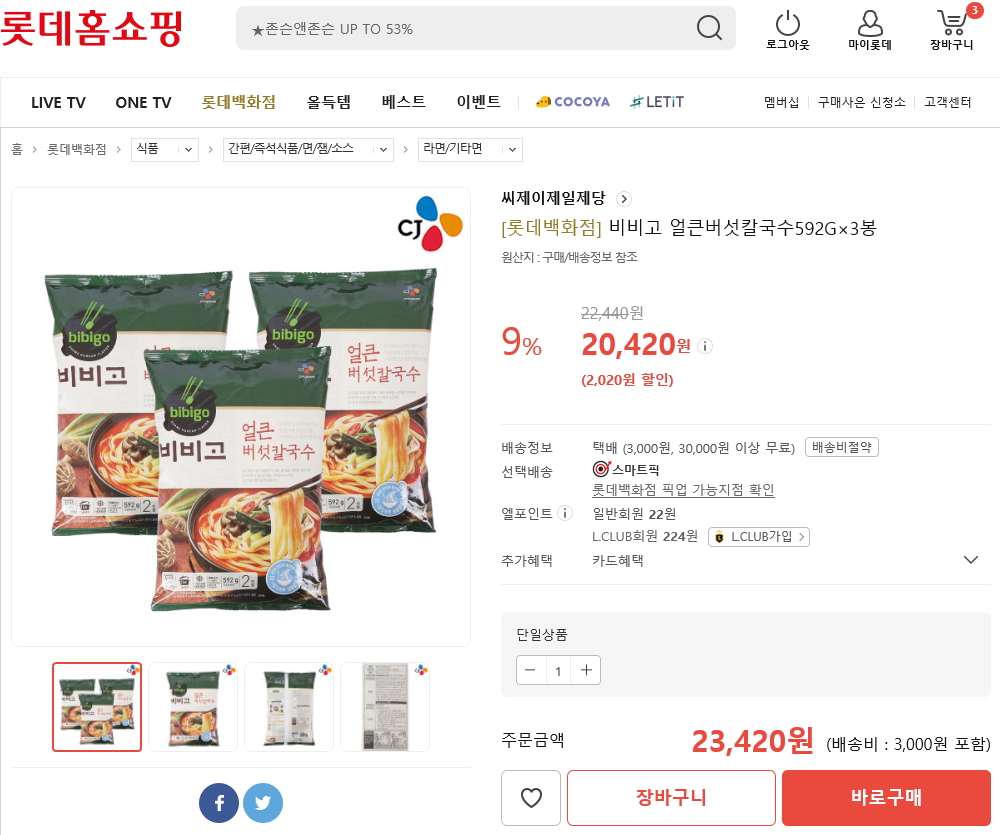오늘은 롯데홈쇼핑의 씨제이제일제당 비비고 얼큰버섯칼국수를 소개해 드릴께요ㅎㅎ
