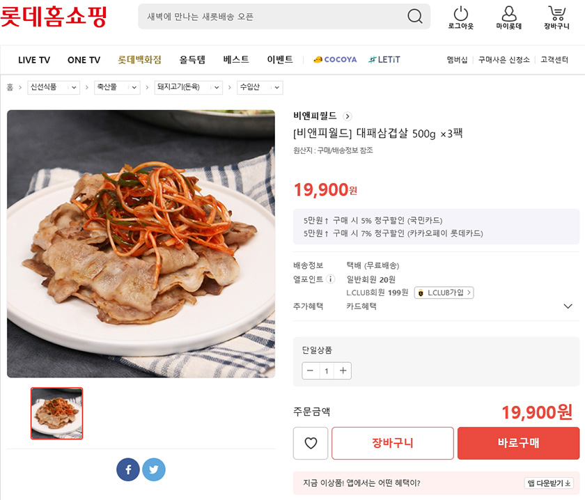 오늘은 롯데홈쇼핑의 비앤피월드 대패삼겹살을 소개해 드릴께요ㅎㅎ