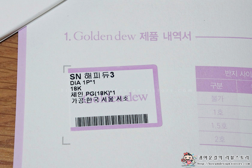 다이아몬드, 18K 핑크골드가 적힌 제품 내역서..