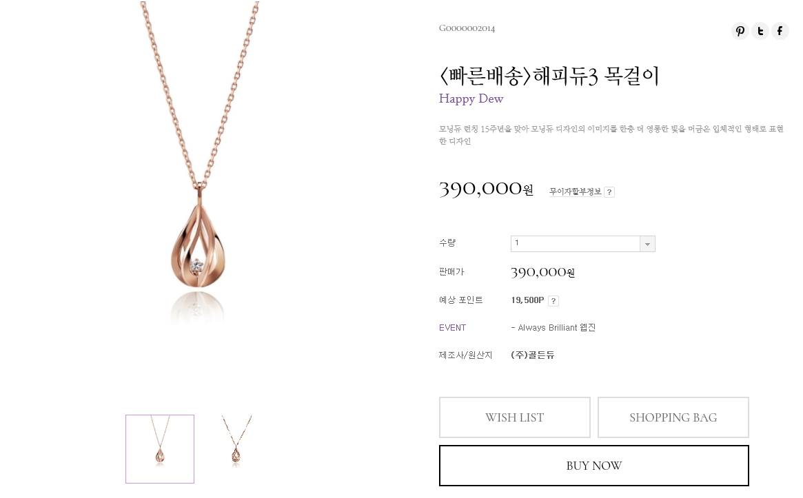 골든듀 해피듀 목걸이(390,000원) 에요!