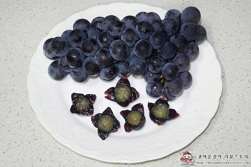 포도 껍질을 발라내면 달콤한 포도알갱이가~