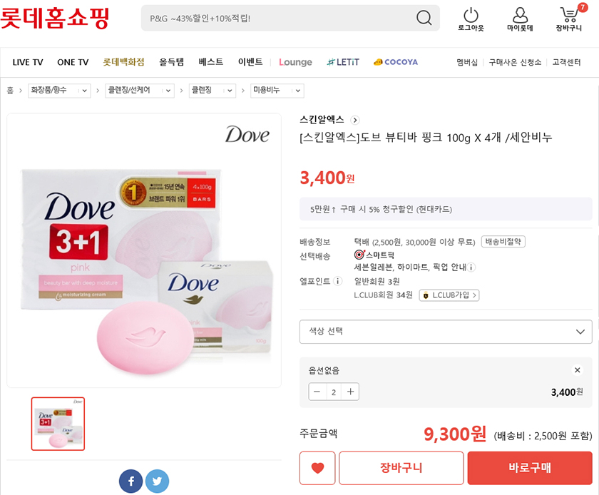 그럼, 귀여운걸과 함께 롯데홈쇼핑 스킨알엑스 도브 뷰티바 핑크 세안비누를 살펴볼까요?^^