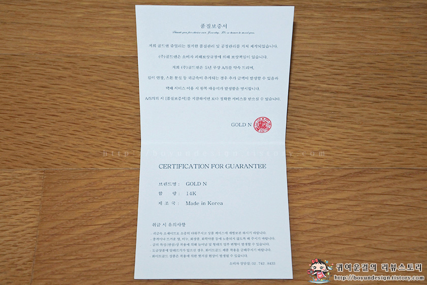 품질보증서에요..