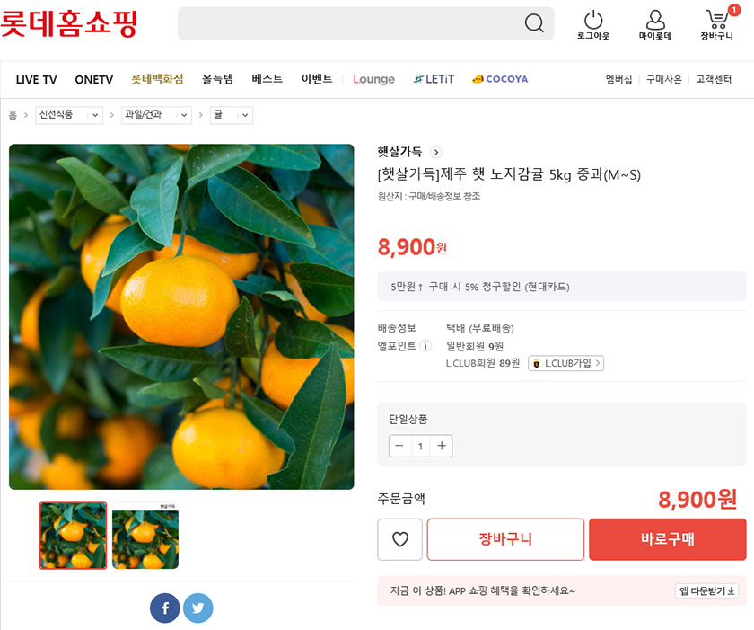그럼, 귀여운걸과 함께 롯데홈쇼핑 햇살가득 제주 햇 노지감귤 5kg 중과(M~S)를 살펴볼까요?^^