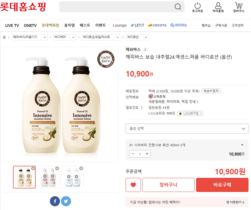 해피바스 보습 내추럴24 시어버터 인텐시브 모이스춰 로션 쇼핑하러 바로가기