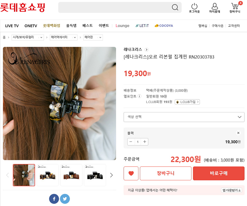 오늘은 롯데홈쇼핑의 레나크리스 오르 리본펄 집게핀 RN20303783을 소개해 드릴께요ㅎㅎ
