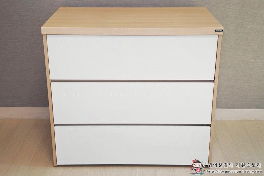 서랍장 우측 상단에 에몬스 로고가 딱!