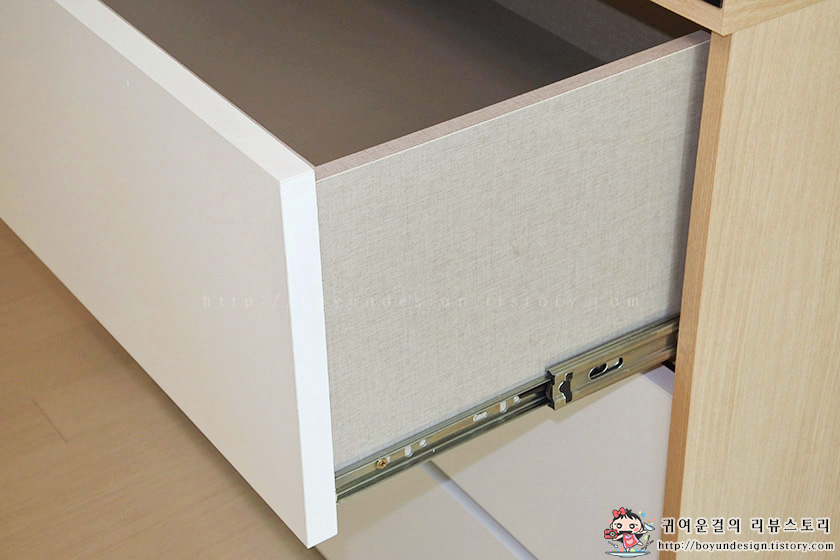 서랍장이 빠지는것을 방지하는 안전한 3단 볼레일이 사용되었어요ㅎㅎ