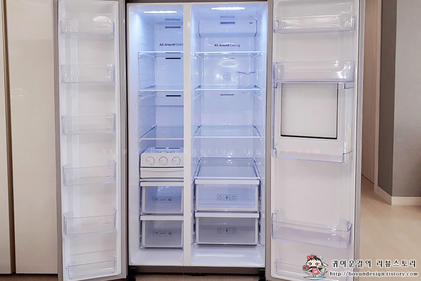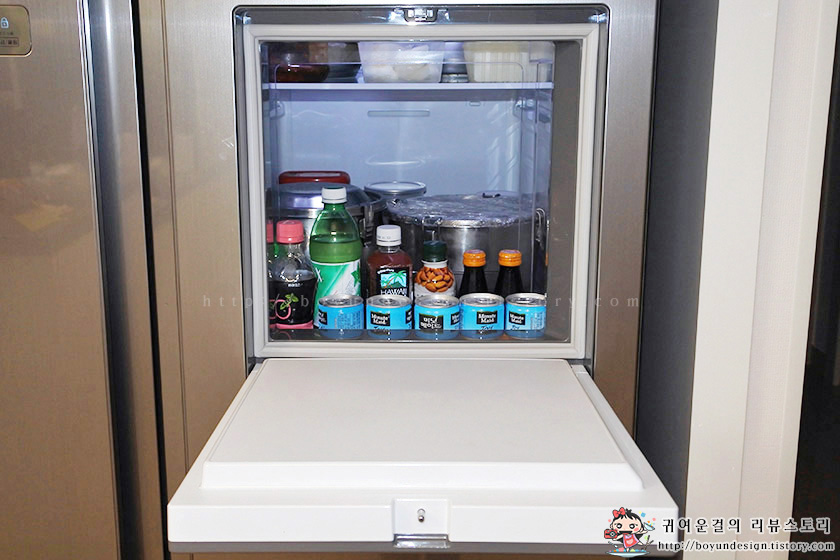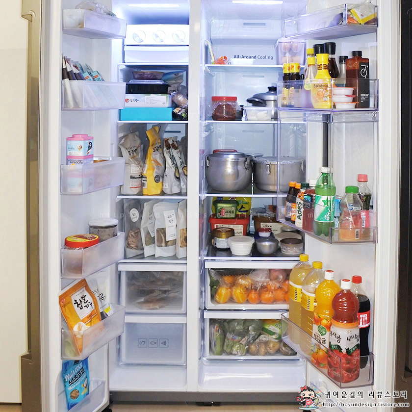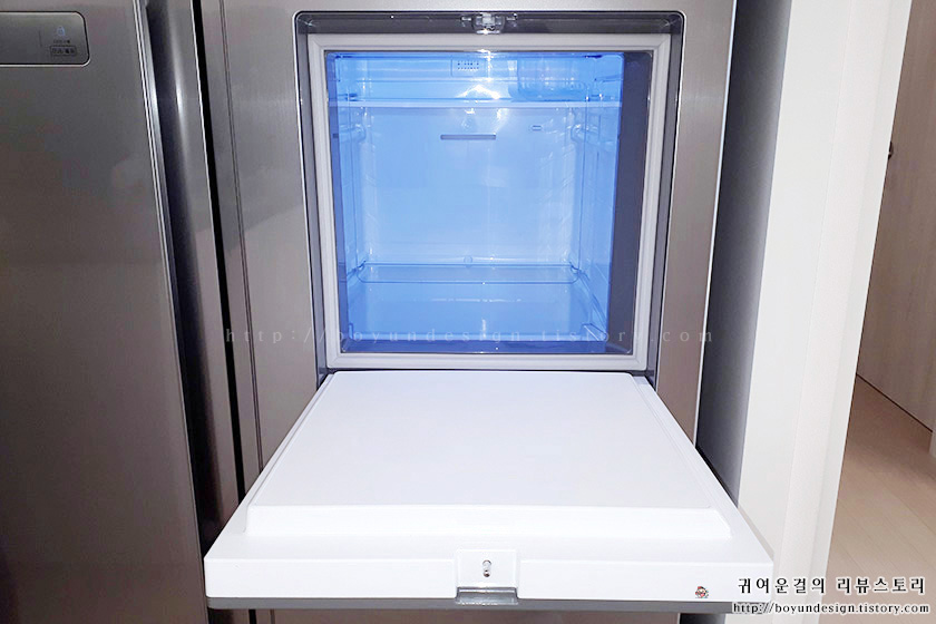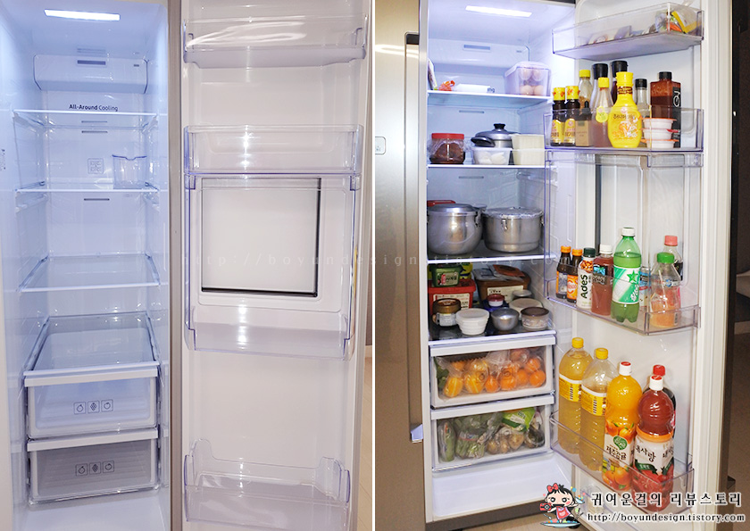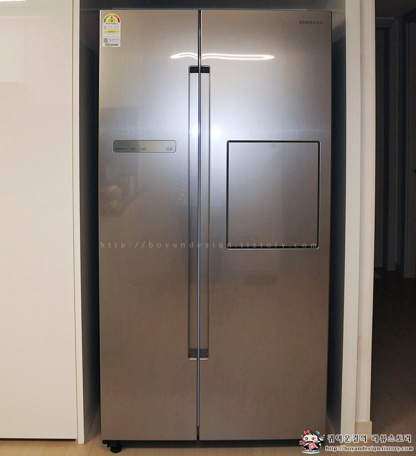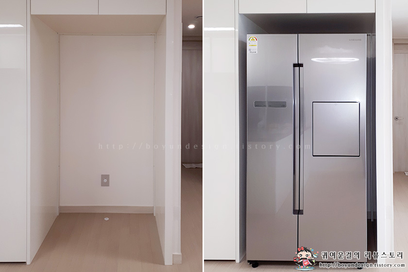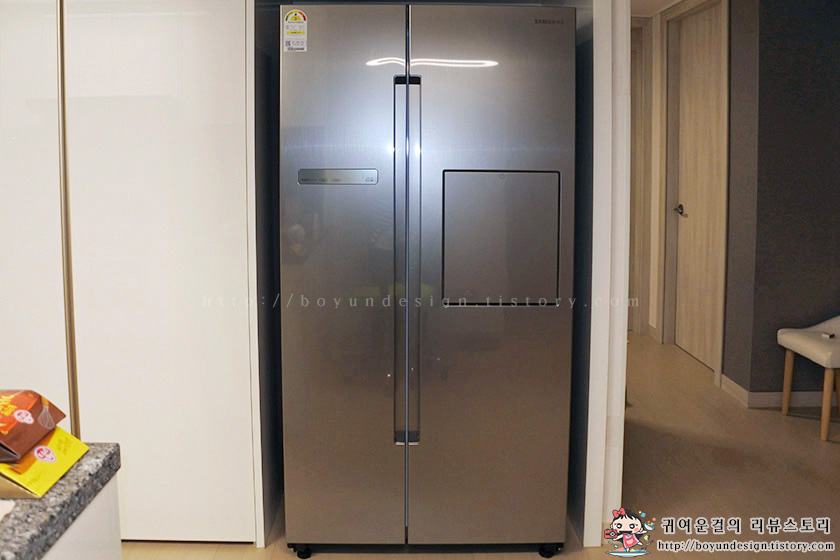 휑~ 하니 쓸쓸한 냉장고 칸이 삼성 양문형 냉장고로 꽉 차고 세련되게 변신했네요^^