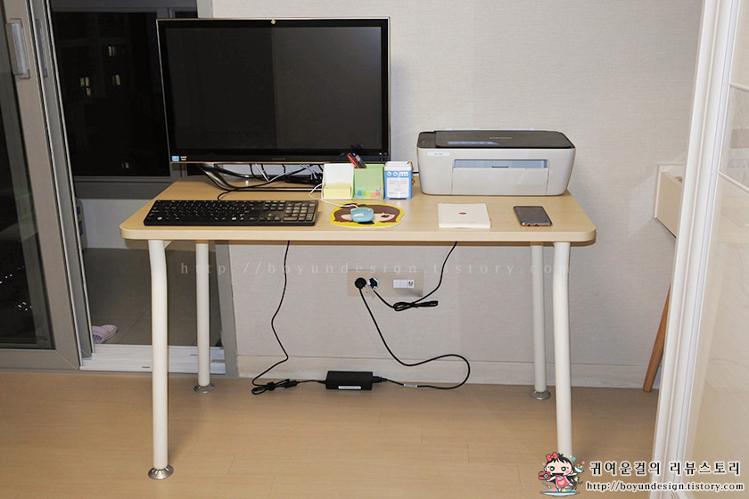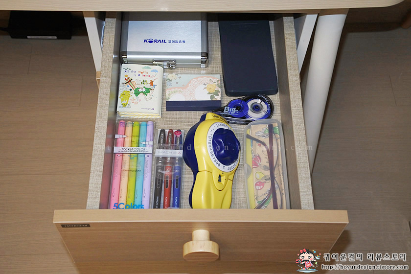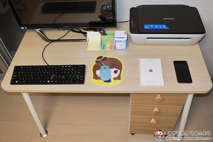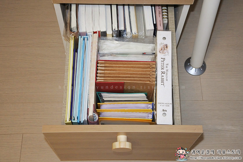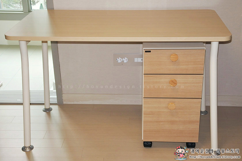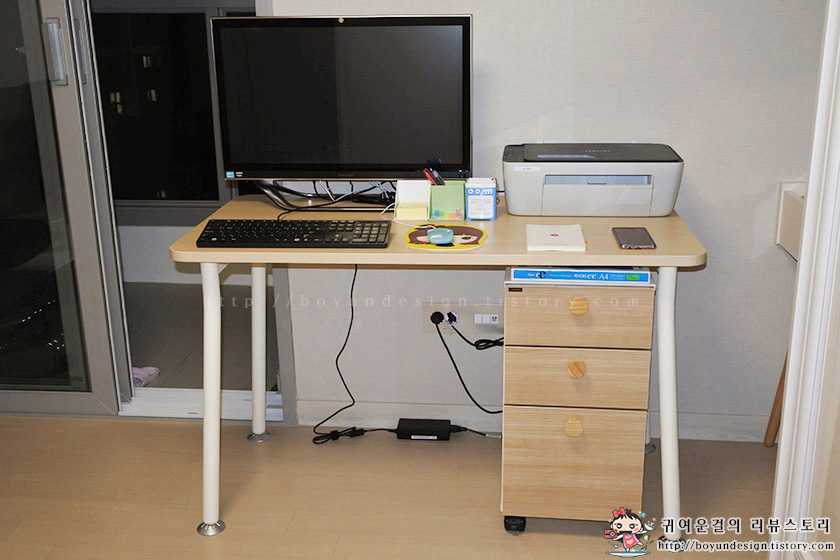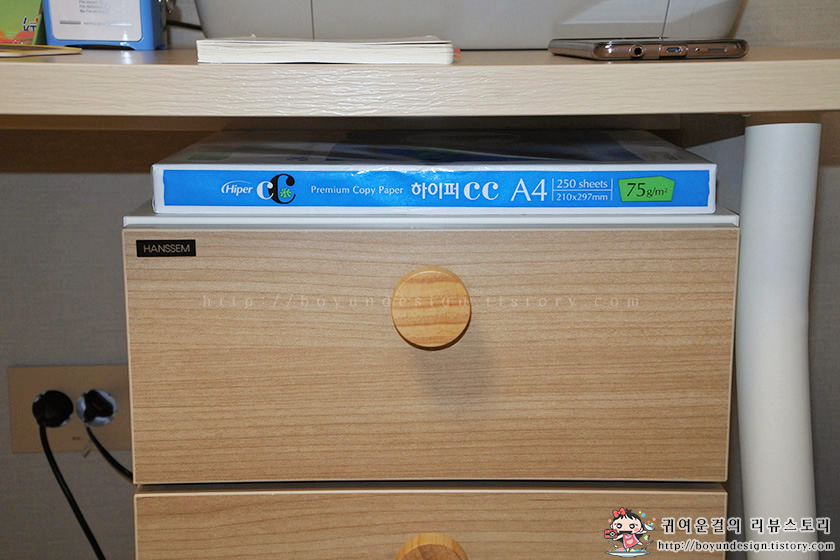 책상과 서랍장 사이에는 약간의 공간이 있어서 A4용지를 보관하고 사용하기 좋더라구요~