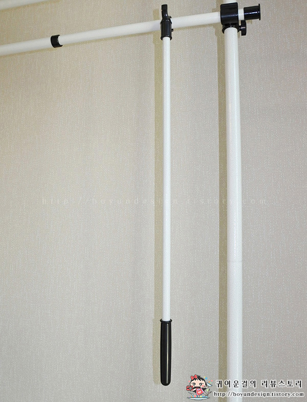 상부 커튼팔을 끼운 후 천정높이만큼 뽑아 올리면,