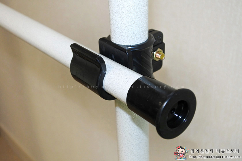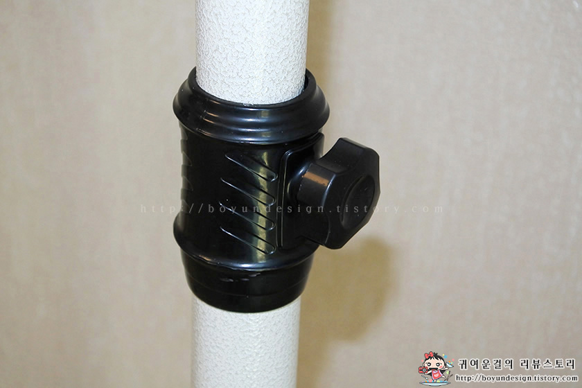 기둥 설치 전 기둥에 삽입한 후 원하는 높이에 고정시켜 주었어요~
