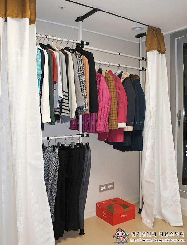 커튼이 행거의 전면을 가려주어 너저분해 보이는 옷을 감출 수 있어 매력적이고,