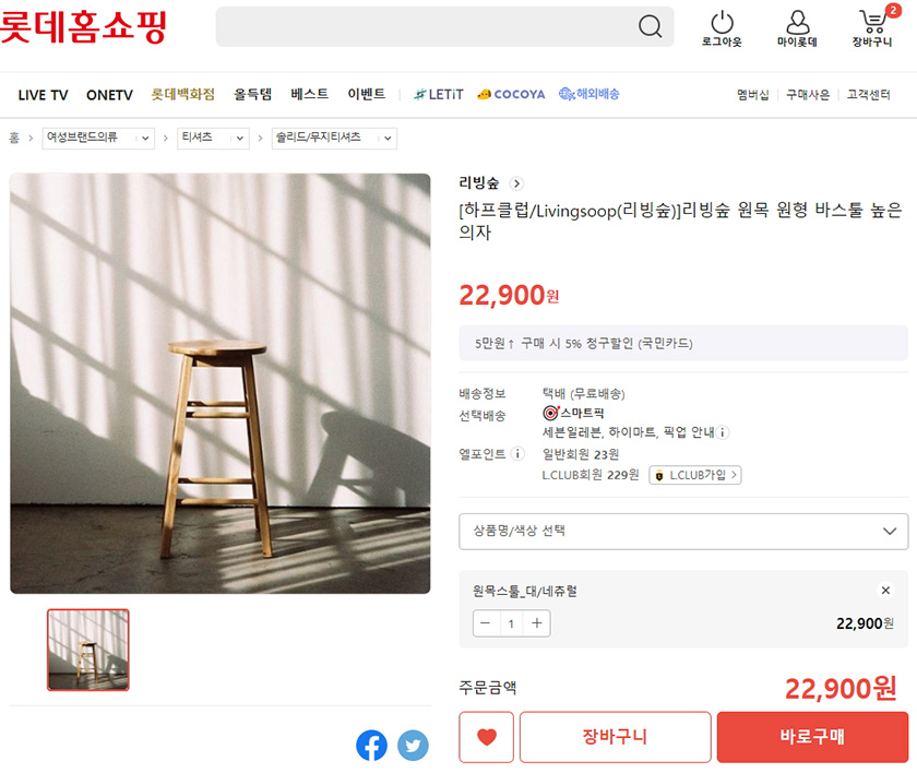 오늘은 롯데홈쇼핑의 리빙숲 원목 원형 바스툴 높은 의자를 소개해 드릴께요ㅎㅎ
